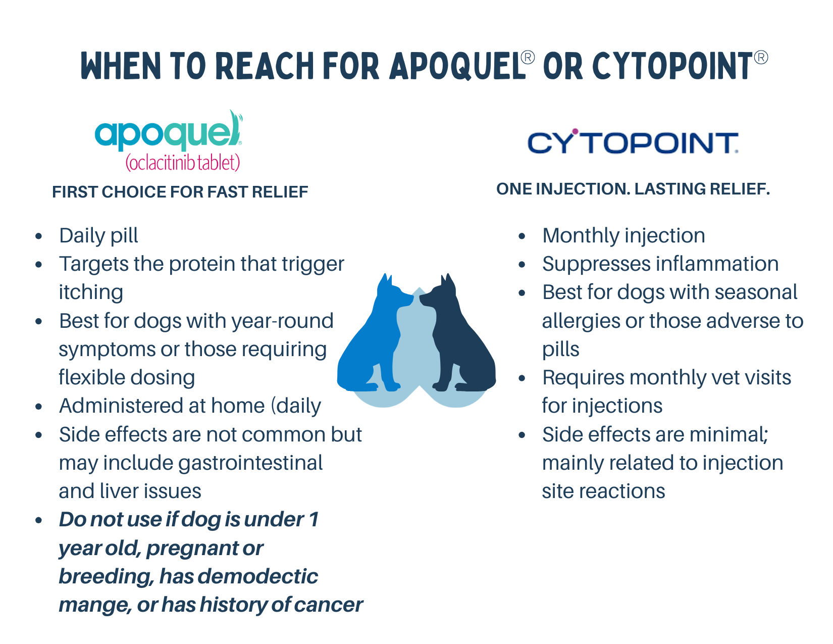 Allergies can be frustrating for both you and your dog, but they are very manageable with the right approach. Whether it’s prevention, environmental changes, or medical support like Apoquel or Cytopoint, relief is possible.